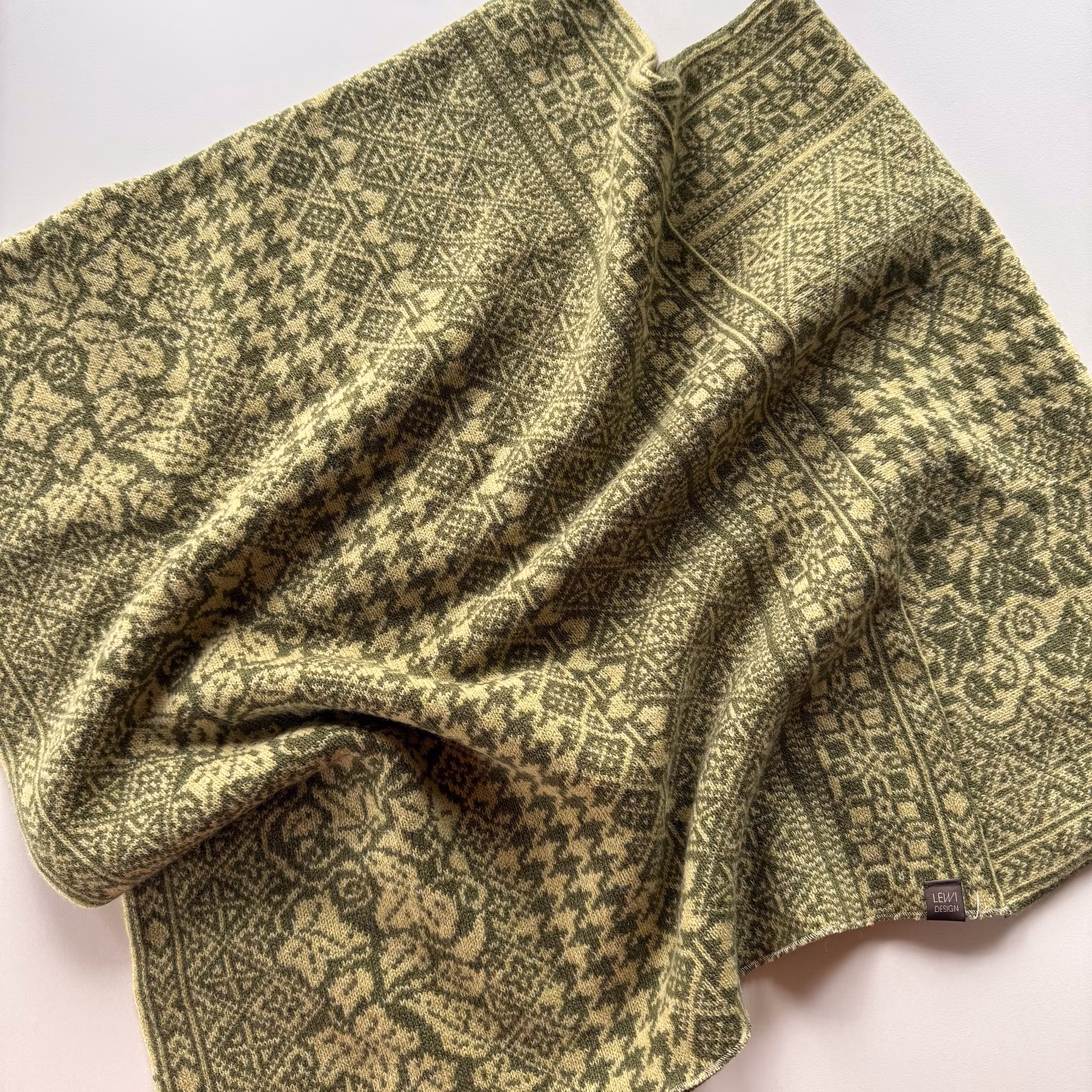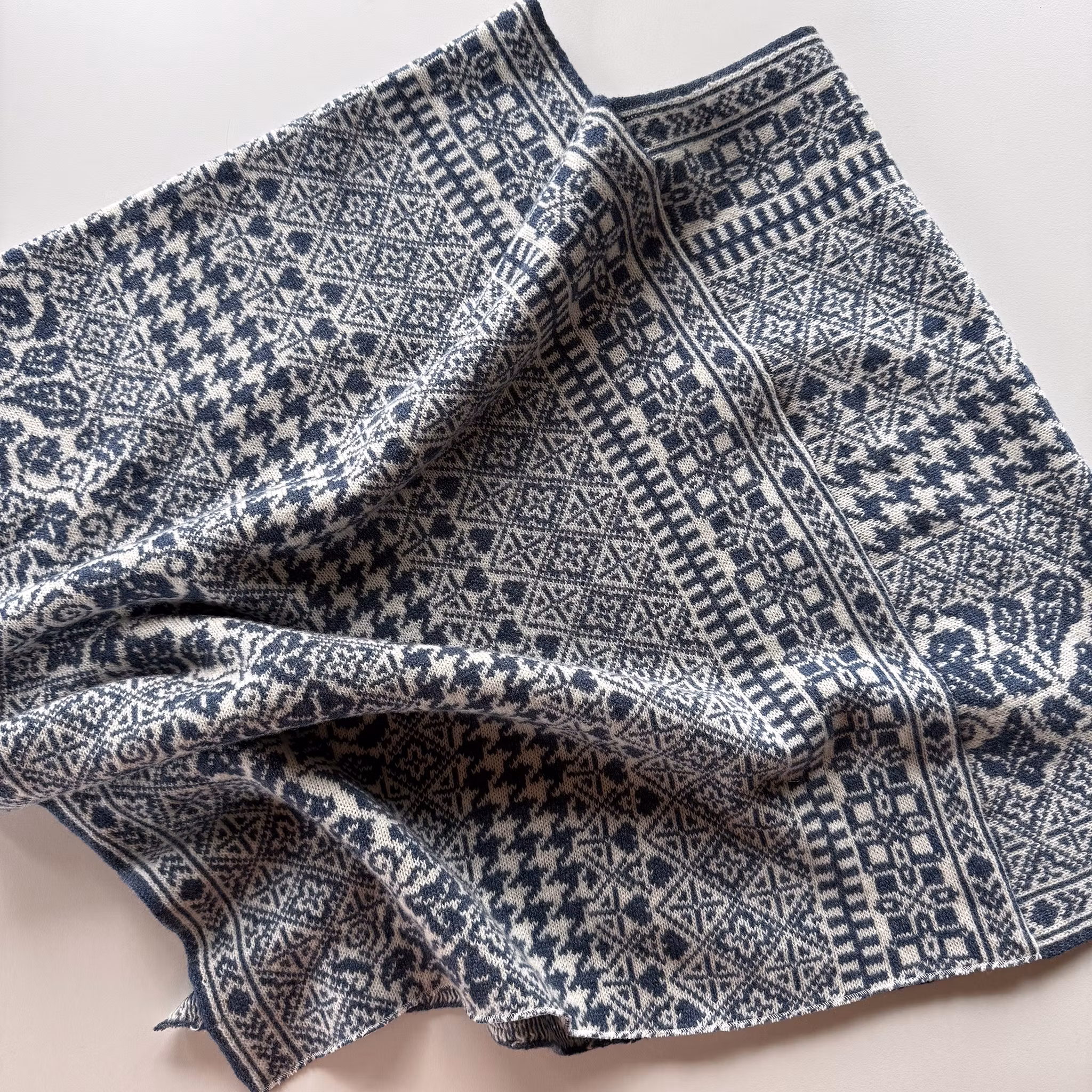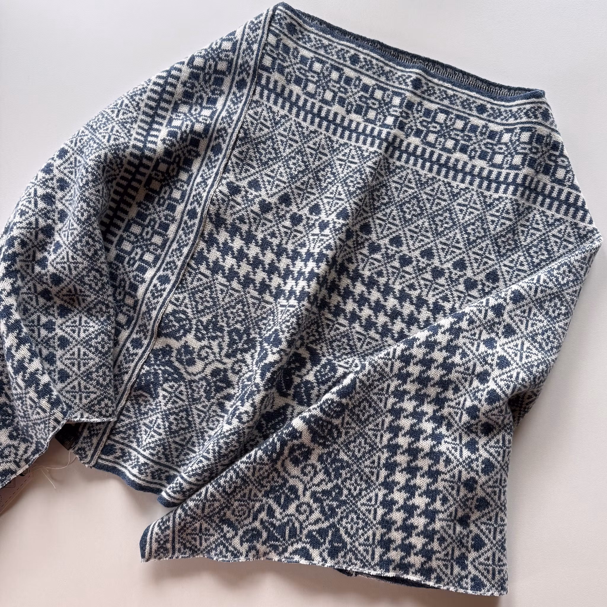 Poncho i merinolammull som har klassiska mönster med inspiration från Dalarna.